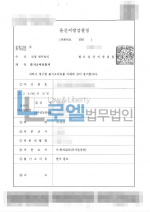 로엘법무법인은 1) 경찰조사 참여, 2) 변호인의견서 작성 및 제출 등을 통하여 [혐의없음] 처분을 이끌어냈습니다.